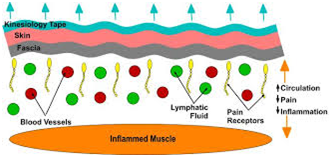 Η κίνηση της ταινίας κατά τη διάρκεια της άσκησης διεγείρει αισθητικούς υποδοχείς στο δέρμα και μπορεί να βελτιώσει την μυϊκή συστολή. Η εν τω βάθει αγγειακή λεμφική λειτουργία ενισχύεται από την τοπική δράση άντλησης, απότοκος της εναλλαγής μυϊκής συστολής και χαλάρωσης.